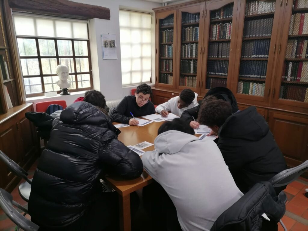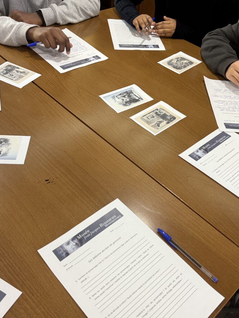 La visite s’est poursuivie par un atelier d’écriture : à partir d’une image, les élèves devaient imaginer un épisode de la vie de Jean-Jacques Rousseau.