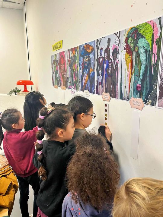 Les classes de GS, CPA, CE1A et CE1B, CE2A et CE2B, CM1A, sont allés à la rencontre de la figure des MÉCHANT.ES à travers tous les médias culturels, artistiques, classiques, contemporains, légendaires et mythiques, le tout dans un univers scénographié et animé par l’équipe du CCVF.