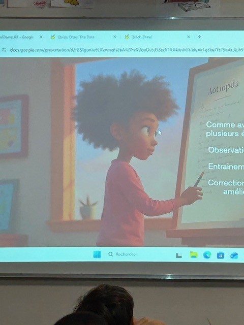 Dans un second temps, les élèves ont mis en pratique ces apprentissages en donnant vie à leurs scénarios. Ils ont réalisé l’illustration de l’univers qu’ils avaient imaginé, en utilisant de manière réfléchie et pertinente l’outil de l’intelligence artificielle pour générer des images. Ce travail leur a permis d’explorer les possibilités créatives offertes par les technologies numériques.