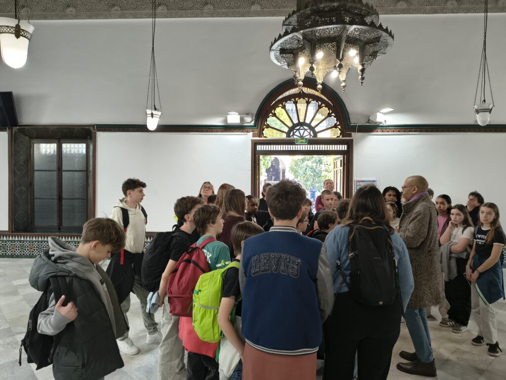 Après avoir pique-niqué au square des Arènes de Lutèce, nous avons pris la direction de la Grande Mosquée de Paris, où un guide nous attendait : découverte du patio, de la bibliothèque, sans oublier les jardins et la salle de prière.